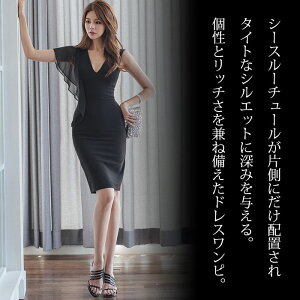 ワンピース セクシー ワンピ タイト 膝丈 ひざ丈 Vネック ブラック ノースリーブ シースルー フリル 上品 セクシーワンピース キャバワンピ タイトワンピ タイトワンピース 30代 スナック 服 キャバ キャバドレス 韓国 ファッション レディース 黒 おしゃれ 春夏 春服 夏服
