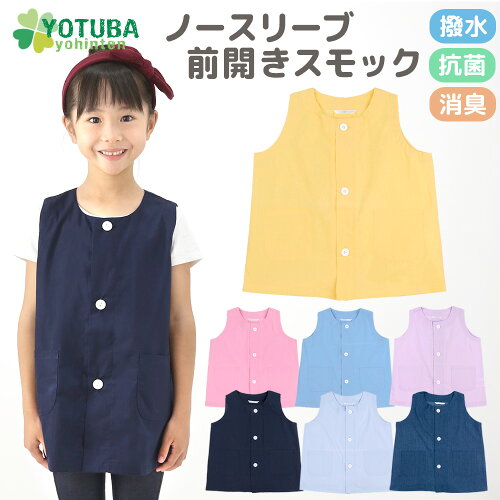 ノースリーブ無地前開きスモック(撥水 抗菌 消臭加工) 袖なし ボタン掛け 遊び着 プレイウエア 幼稚園 保育園 準備 持ち物 指定 入園 シンプル ノーアイロン 男の子 女の子 ボタン おしゃれ 110/120/130 よつば洋品店【ネコポス送料200円】