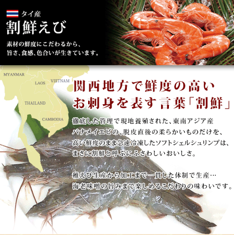 居酒屋 レストラン カフェ 中華料理店 焼肉店 食堂 お弁当屋さん 和食料理店 洋食料理店 パン屋さん カラオケ店 ホテル 旅館 喫茶店脱皮したての殻が柔らかい海老=ソフトシェルシュリンプはそのまま加熱調理で殻ごと、頭ごと頂けてしまうタイプ! ですので海老本来の風味と旨味が抜群で、殻に含まれるカルシウムやキチンキトサンなども摂取できる栄養も豊富なおいしさです♪