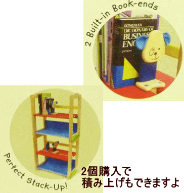 上段は、可愛いわんちゃんの可動式ブックエンドが付いています。