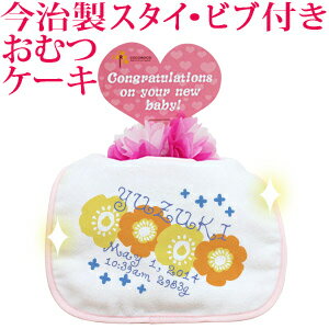 おむつケーキ 出産祝い 名入れ 名入れ無料 ラッピング無料 国産 肌に優しい今治タオル生地 お名前 誕生日入り 今治製スタイ (ビブ よだれかけ)付き オムツケーキ テキスタイルデザイン 北欧風フラワー 女の子 百日祝い 【ココロコ】