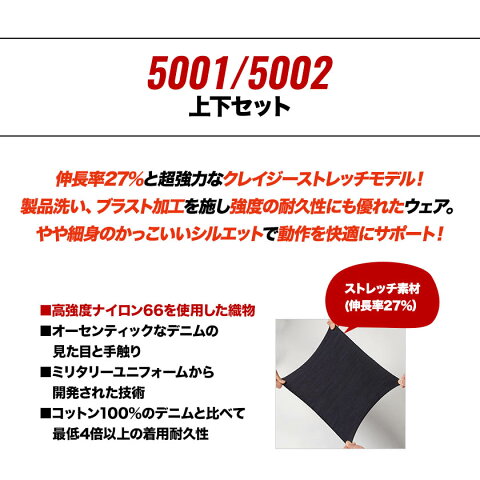 強度と耐久性に優れたコーデュラストレッチデニムを用いた 細身なデーパードシルエットのダブルジップ仕様ジャケットとカーゴパンツ バートルムルスペックロゴでバランス良くミリタリー要素をプラス ナチュラルンブラストフェードが古着ライクな表情を演出 作業着 上下セット バートル デニム5001 5002 商品情報 作業着 上下セット バートル デニム5001 5002 商品名 バートル デニム作業着上下セット 5001 5002 セット内容 バートル 5001 デニム ジャケット ユニセックス バートル 5002 デニム カーゴパンツ ユニセックス 作業着 上下セット バートル デニム5001 5002 サイズ M L LL 3L 作業着 上下セット バートル デニム5001 5002 カラー 45.インディゴ 作業着 上下セット バートル デニム5001 5002 素材 素材:コーデュラストレッチデニム 伸長率27% 製品洗い ブラスト加工 混率:綿65% ポリエステル19% ナイロン14% ポリウレタン2% 作業着 上下セット バートル デニム5001 5002 対象 建設 建築 大工 鉄鋼 機械 電気工事 ビルメンテ 清掃 精密機械 運送 倉庫 営業 配達 農業 林業 等 男性 女性 メンズ レディース 紳士 婦人 作業着 上下セット バートル デニム5001 5002 用途 作業服 作業着 現場服 仕事着 仕事服 ユニフォーム 制服 ワークウェア 作業着 上下セット バートル デニム5001 5002 Strong Point □ 身体の動きとシンクロするクレイジーストレッチ素材 伸長率27% □ 強度と耐久性に優れたコーデュラデニム素材 □ タイトフィットなテーパードシルエット □ 製品洗い ブラストを施したヴィンテージ加工 □フロントファスナーダブルジップ仕様 □男女ユニセックスシリーズ コーデュラデニム CORDURA Denim Hardwearing 着用耐久性 Abrasion Resistant 耐摩耗性 Built to Last 長持ち ・高強度ナイロン66を混紡した織物 ・オーセンティックなデニムの見た目と手触り ・ミリタリーユニフォームから開発された技術 ・コットン100%のデニムと比べて4倍以上の耐摩耗性を実現 ※CORDURAは強度と耐久性に優れたファブリックに対するインベスタ社の登録商標です 作業着 上下セット バートル デニム5001 5002 製造元 株式会社バートル 新しい街をつくる建設現場、便利で豊かな暮らしに欠かせない製造工場や物流システム。