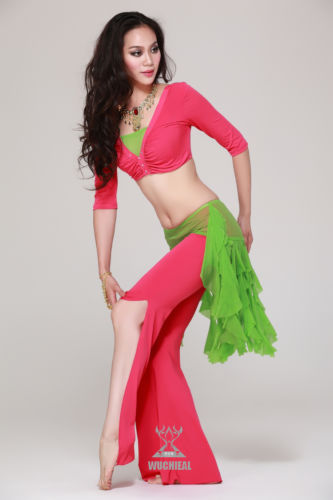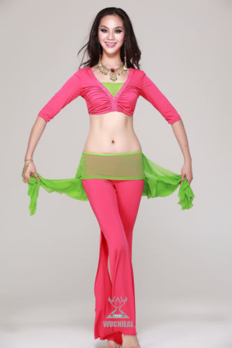 ベリーダンス 衣装 3 セット ブラウス トップ&ヒップスカーフ ベルト スカート&パンツ 14 カラー コスチューム ダンス 衣装 発表会